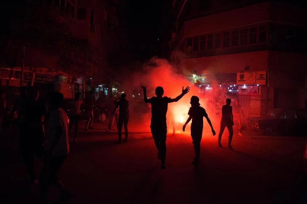 Egyptians light flares as they protest against the Egyptian government and the mass death sentences in the Talbiyah neighbourhood of Giza, Egypt on 30 June 2015 (AA)