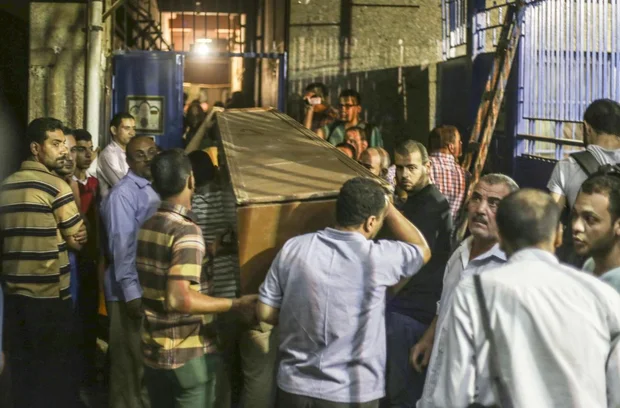Relatives of 9 members of the Muslim Brotherhood killed by Egyptian security forces in a flat in the Sixth of October area in Cairo, carry bodies of victims to the mortuary of Zinhum Hospital, on July 01, 2015 in Cairo, Egypt. (AA)
