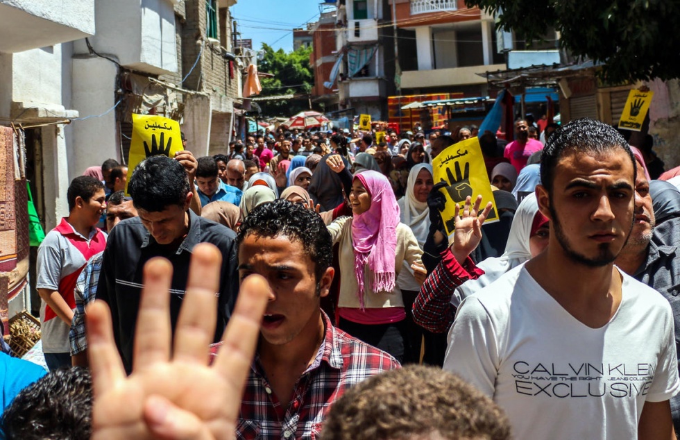 Student activism might have consequences in the balance between old and young generations within the Muslim Brotherhood, pushing the second to claim a major influence in the decision-making process. Today, group members don’t speak too much and rarely use recognisable symbols for fear being targets of the mass campaign against their group. Since Morsi’s ouster, 10,000 members have been arrested, while around 1,400 died. Bringing a leaflets or a pictures with the four-fingers Rabaa symbol, which the state associates with the Muslim Brotherhood, is enough to spend from 5 up to 25 years in prison.
