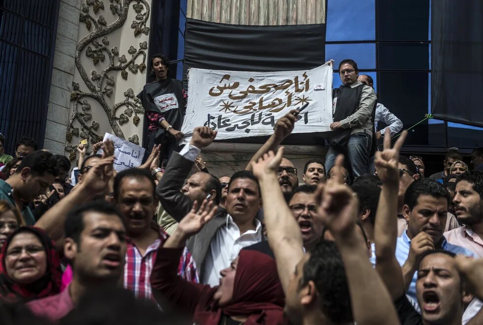 Wednesday saw angry scenes outside the central Cairo headquarters of the journalists’ syndicate.