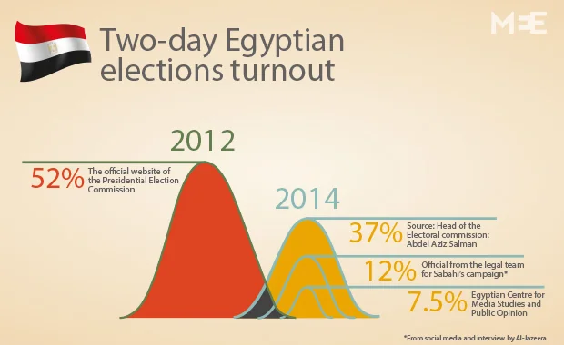But Aziz el-Kaissouni, an analyst who spoke to MEE, said that both candidates would be uncomfortable with a turnout of lower than 52 percent, the level of participation during the 2012 elections that brought Mohamed Morsi to power.