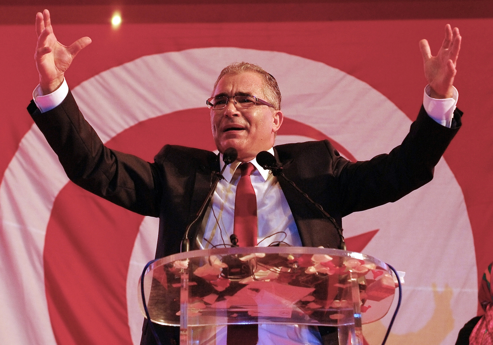 Former secretary-general of Nidaa Tounes, Mohsen Marzouk, gives a speech during a public meeting on 10 January 2016 in the capital, Tunis (AFP)