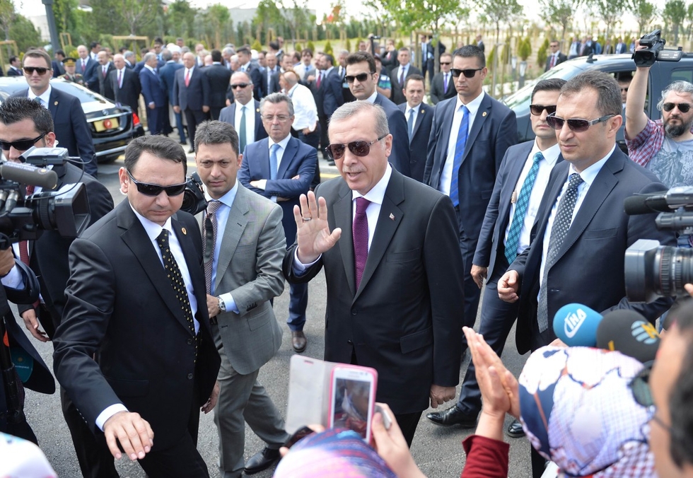 Turkish President Recep Tayyip Erdogan arrives for the inauguration of the Bayzid I Mosque in Ankara on 23 June, 2016 (AFP)