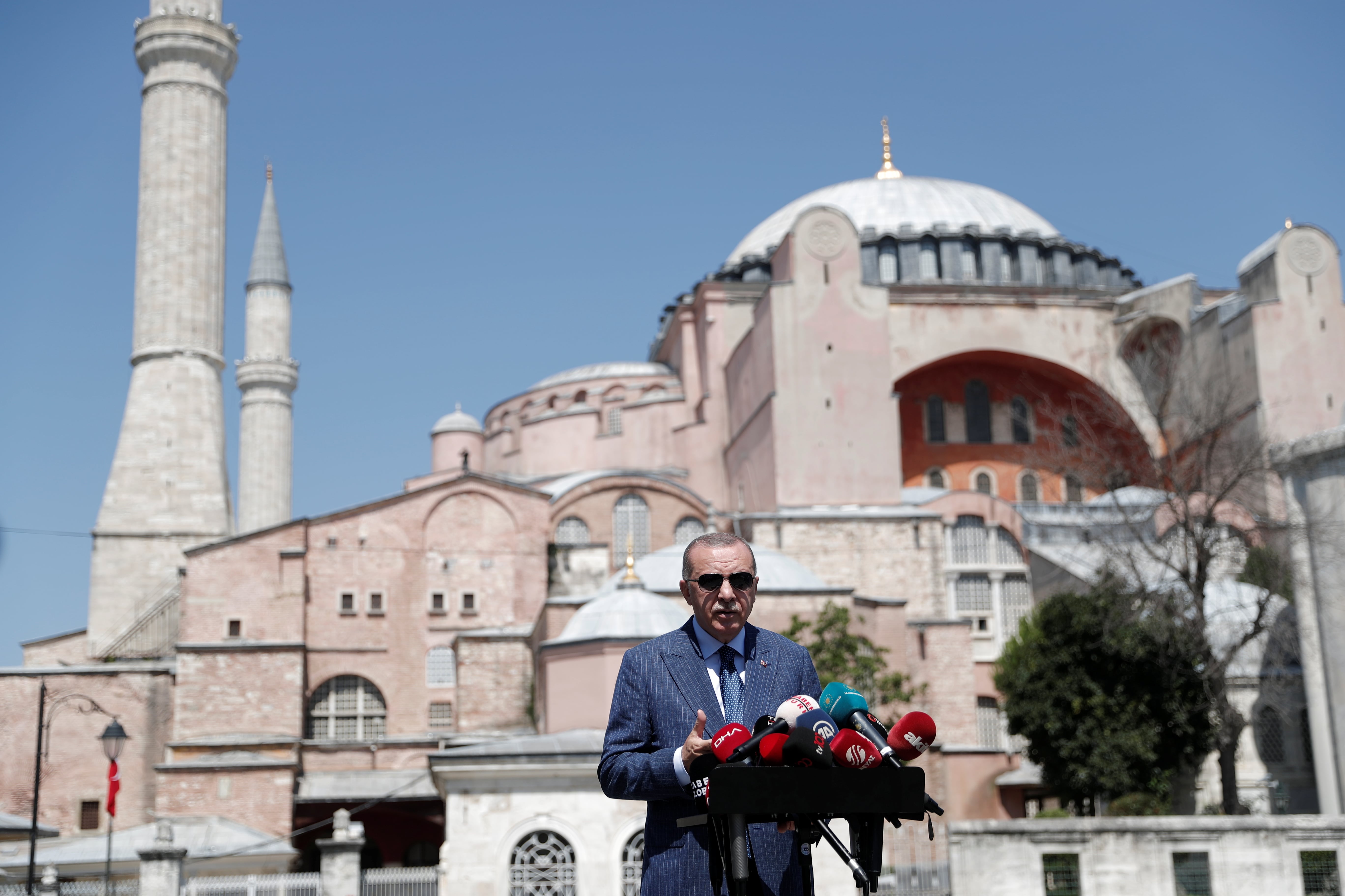 "We have started drilling work again," Erdogan told reporters after participating in Friday prayers at the Hagia Sophia mosque in Istanbul. "We don't feel obliged to talk with those who do not have rights in maritime jurisdiction zones."