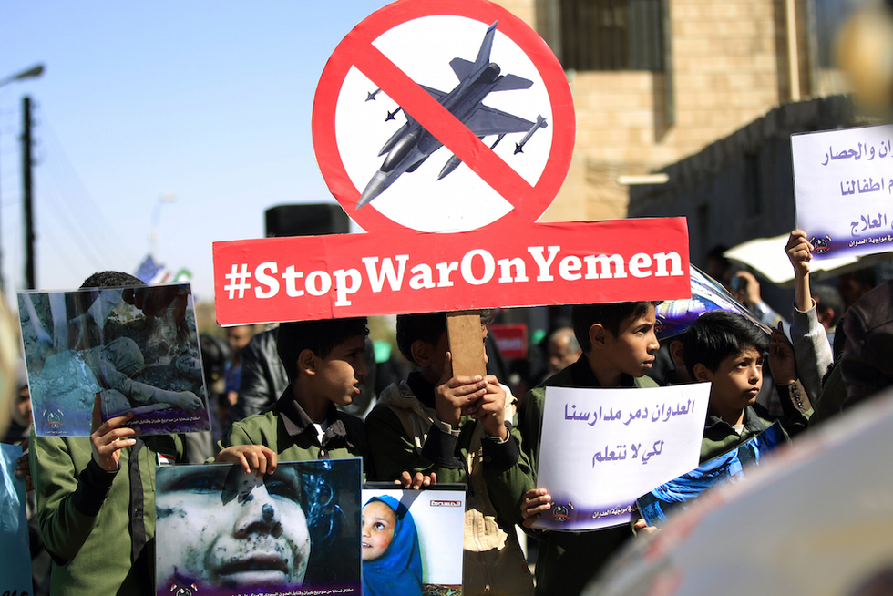 "Despite the pain and the destruction, the arms sales have only continued," said Smith. "It's time for Theresa May and the other leaders to take action and end their support for the Saudi regime and the terrible bombardment that has been inflicted on Yemen."
