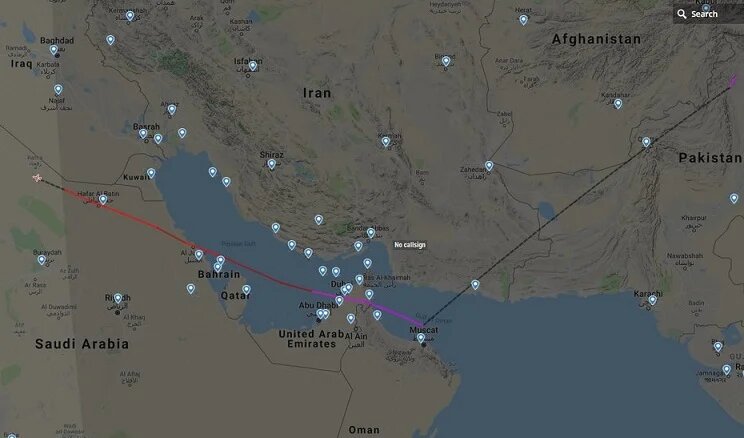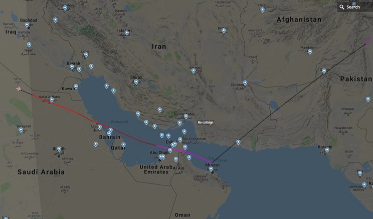 Ian Petchenik from Flightradar24 told MEE: “The aircraft departed and returned to Tel Aviv via Amman and was tracked eastbound and westbound over Pakistan at two different points in time.”