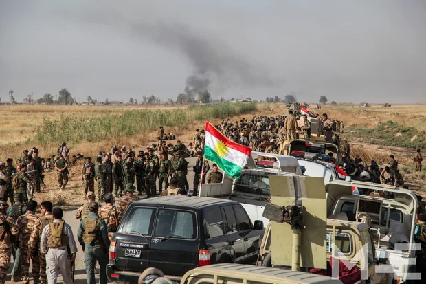 At dawn, thousands of Kurdish Peshmerga forces belonging mainly to the Patriotic Union of Kurdistan (PUK), backed by special counterterrorism units, volunteer fighters, and supporting medical teams gathered by the highway that passes through the village of Haftagar, southeast of Daquq in the Kirkuk province.
