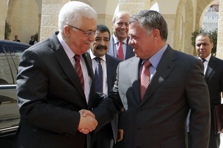 Mahmoud Abbas meets King Abdullah of Jordan at the royal palace in Amman in 2013 (AFP)