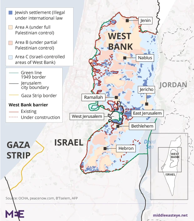 - The establishment of a Palestinian state, whose borders will include the Gaza Strip as well as Areas A, B and parts of Area C in the West Bank (see map below)
