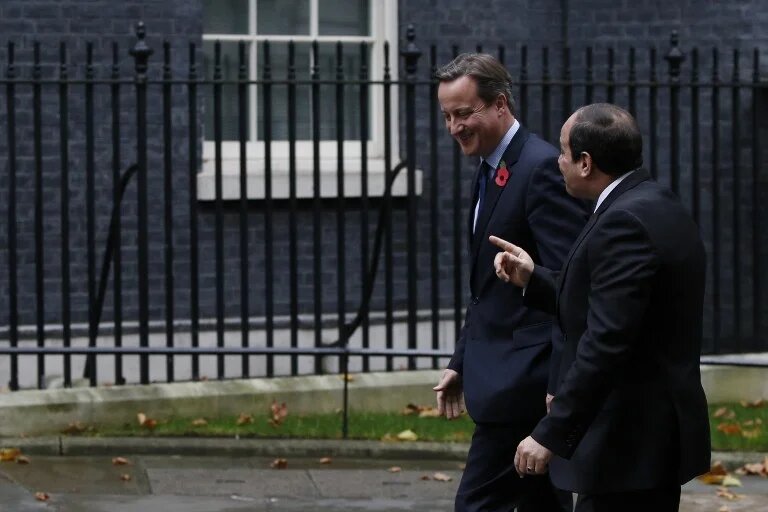 British Prime Minister David Cameron and Egyptian President Abdel Fattah al-Sisi in front of 10 Downing Street during Sisi's visit last November (AFP)