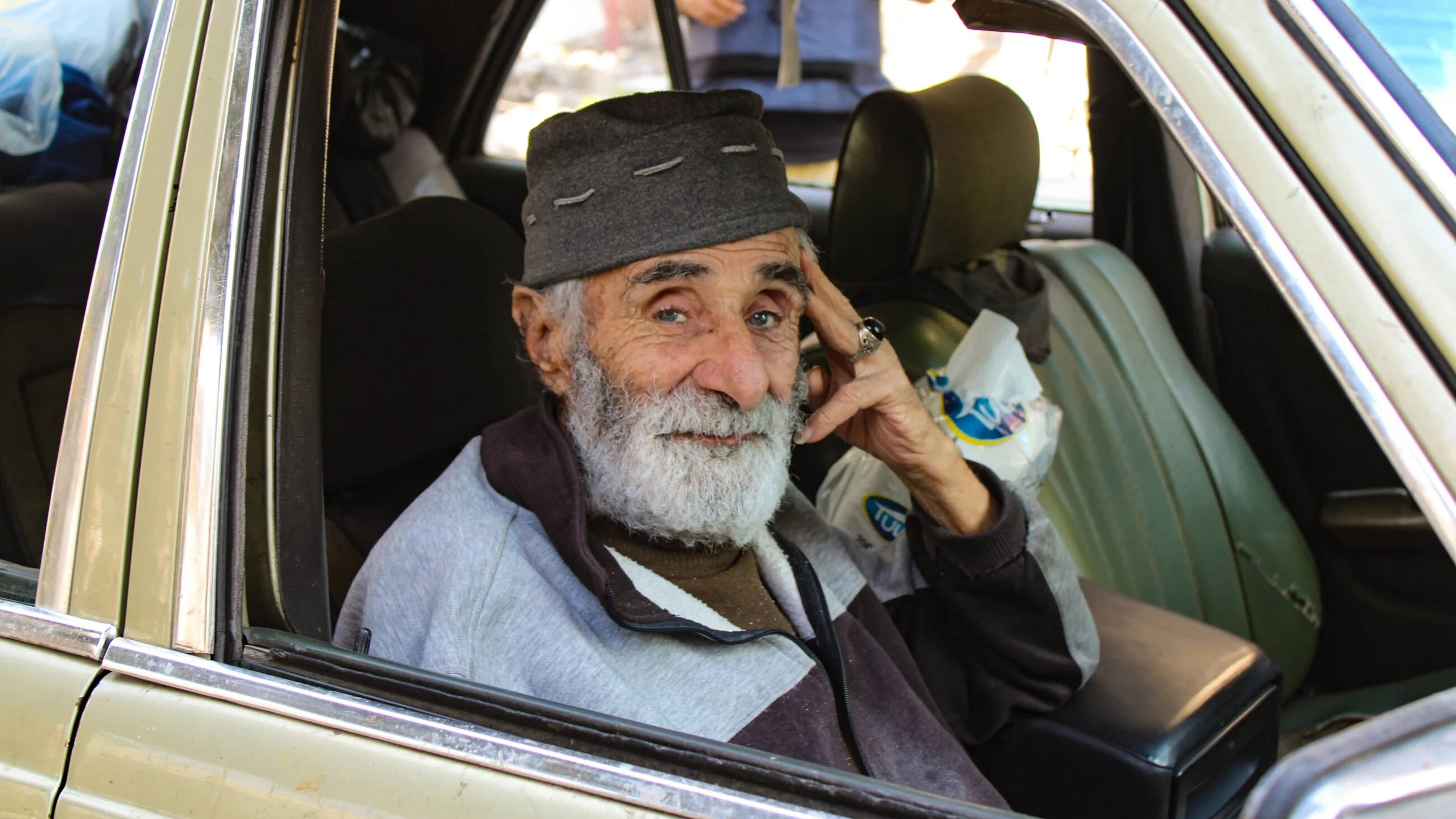 Sfewi has also become the default caretaker of his 90-year-old neighbour, Assad Bitar, who sat silently in the passenger seat. They keep a kerosene stove and blankets in the back seat, in case it is too dangerous to return home and they have to camp outside.