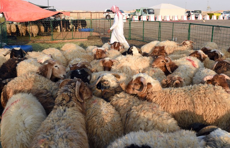 Sheep for sale at a temporary livestock market set up by authorities in Riyadh (AFP)