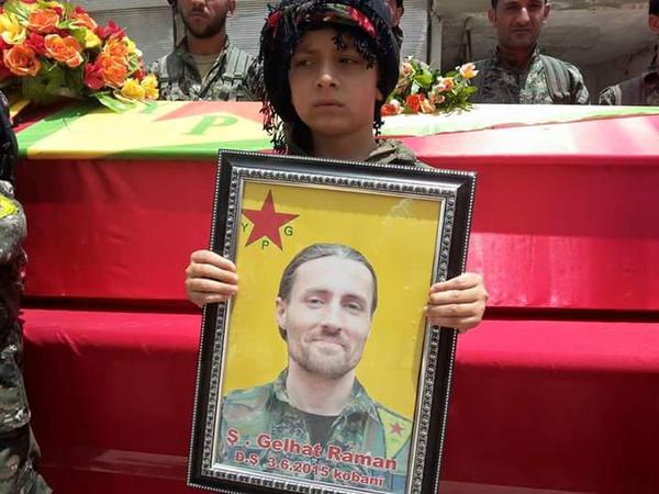 Kobane, which entered the headlines in January after coming under siege by IS, held a funeral for Broomfield on Thursday, displaying pictures and the YPG flag draped over his coffin.