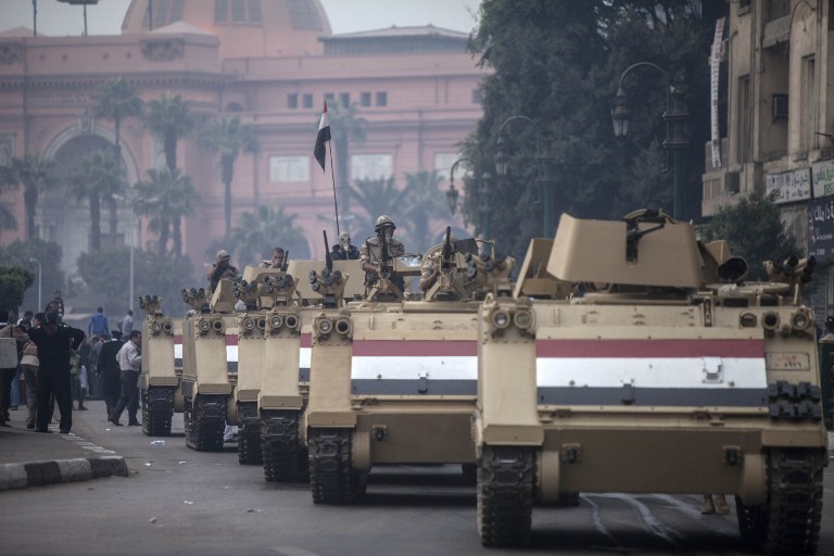 Egyptian security forces' vehicles after dispersing a Cairo University's students protest (AFP)