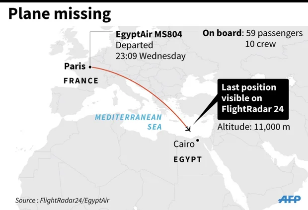 The flight from Paris Charles de Gaulle to Cairo normally takes just over four hours and the plane was due to arrive at 3:05am local time.