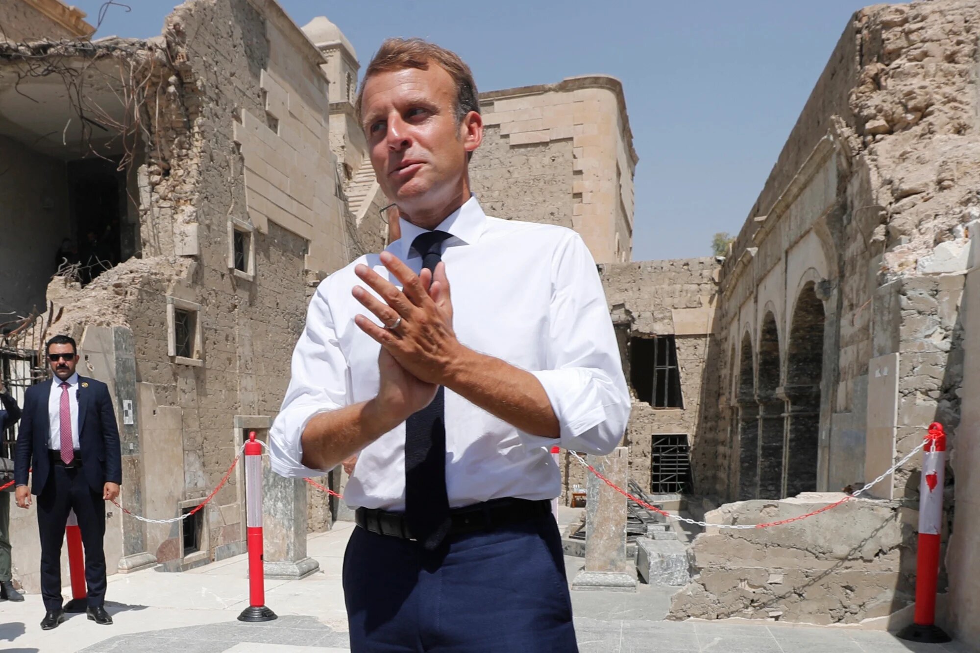 Macron also made a stop at the site of Mosul's al-Nuri mosque, where IS leader Abu Bakr al-Baghdadi had declared the establishment of a "caliphate" in 2014.