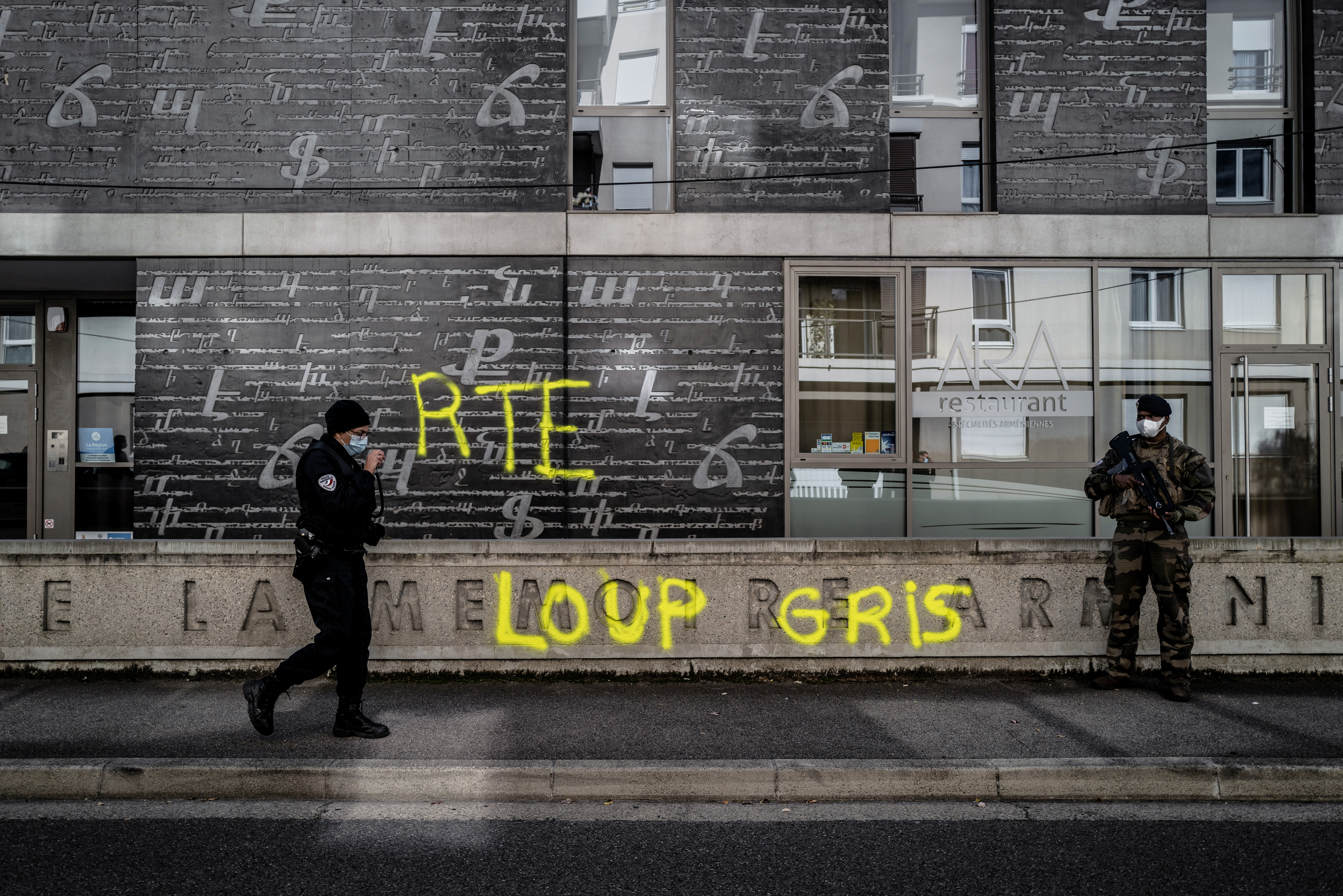 On Sunday, a memorial centre in the town of Decines-Charpieu to the mass killings of Armenians in the Ottoman Empire, which Armenia says was a genocide, was vandalised with pro-Turkish slogans including "Grey Wolves" and "RTE", in reference to Turkish President Recep Tayyip Erdogan.