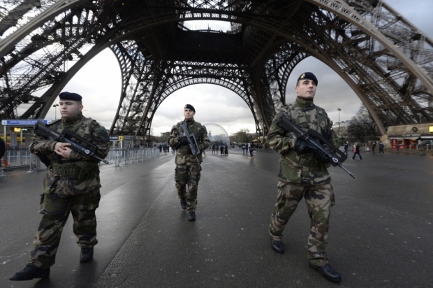 File photo shows police standing guard in Paris (AFP)