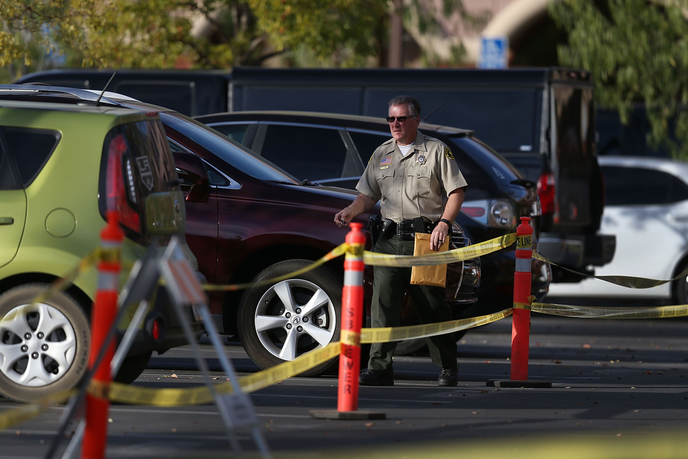 A police officer walks through the parking lot at the Inland Regional Center were 14 people were killed on 7 December 2015 (AFP)