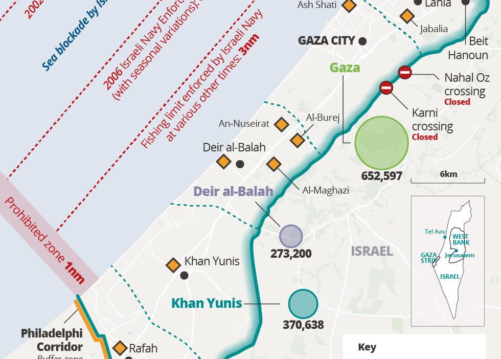Gaza is home to almost two million Palestinians, the majority of whom are long-term refugees (a further 3.25 million Palestinians live in the West Bank). It’s been run by Hamas since elections in 2007: the group is designated as a terrorist organisation by Israel, the US and the EU among others. The West Bank is governed by the Palestinian Authority, which is currently controlled by Fatah, rivals of Hamas. It is one of the most crowded places in the world - but the Israeli blockade means that residents find it tough, if not impossible, to leave.