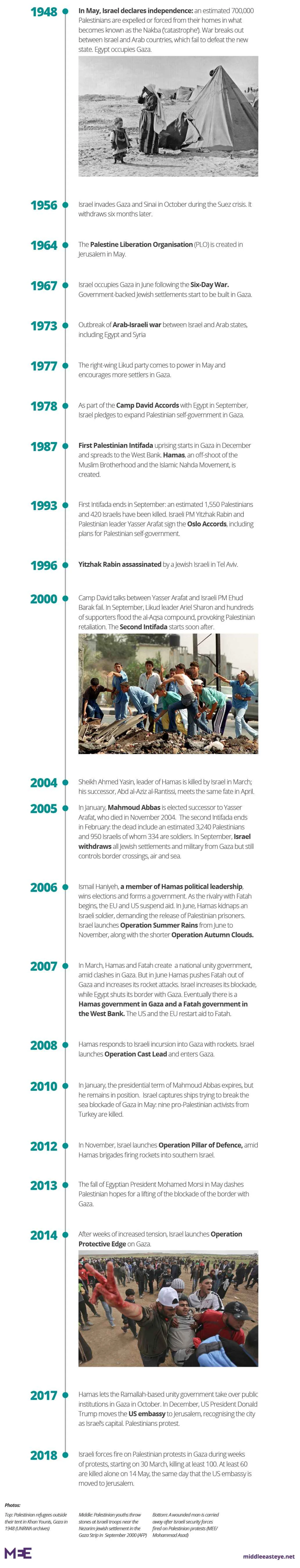 The seven decades after the Nakba have been ones of turmoil and crisis for the residents of Gaza, including occupation, uprisings and Israeli military operations.