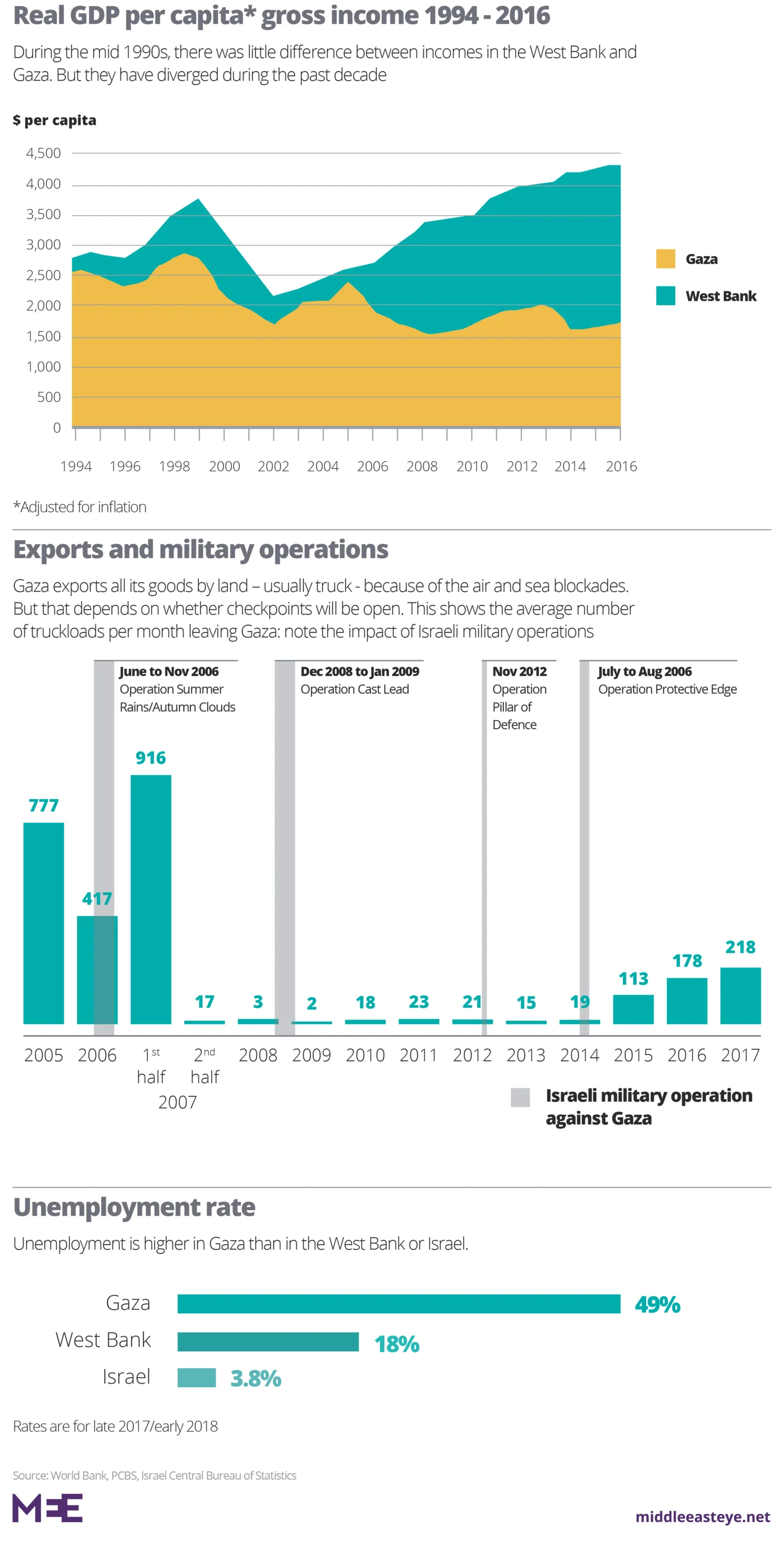 Long-term living conditions in Gaza are some of the worst in the Middle East. A report by the UN in 2015 noted that the economic well-being of Palestinians living in Gaza was worse than in 1995 and that it may be "uninhabitable" by 2020; last year the organisation said that conditions were "unliveable".