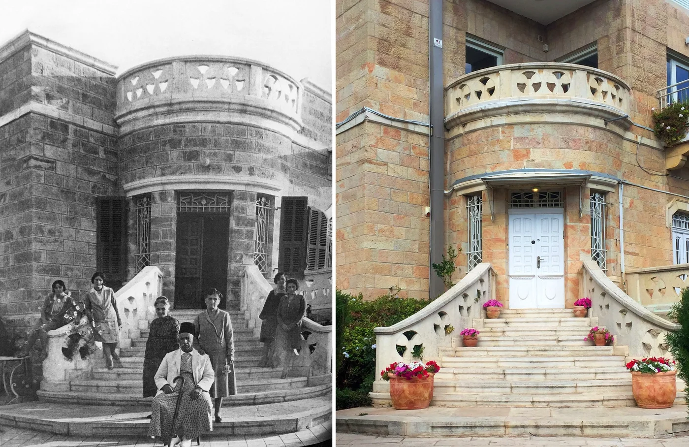 Palestinian Shukri al-Jamal and his wife, sisters and daughters gather in front of their home in the Talbiya neighbourhood of Jerusalem in the late 1920s.