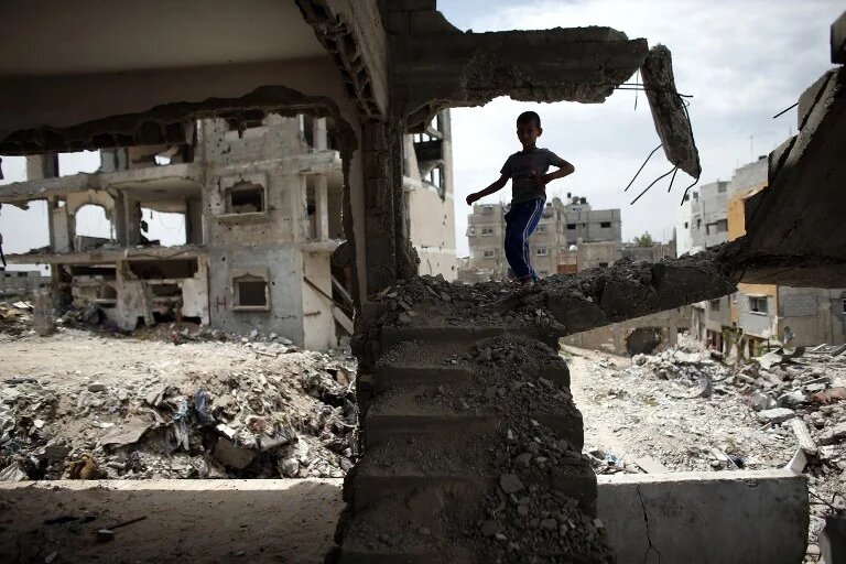A boy plays amid the rubble of his family's former house in Gaza City's eastern Shujaiyeh neighbourhood during the war last year (AFP)