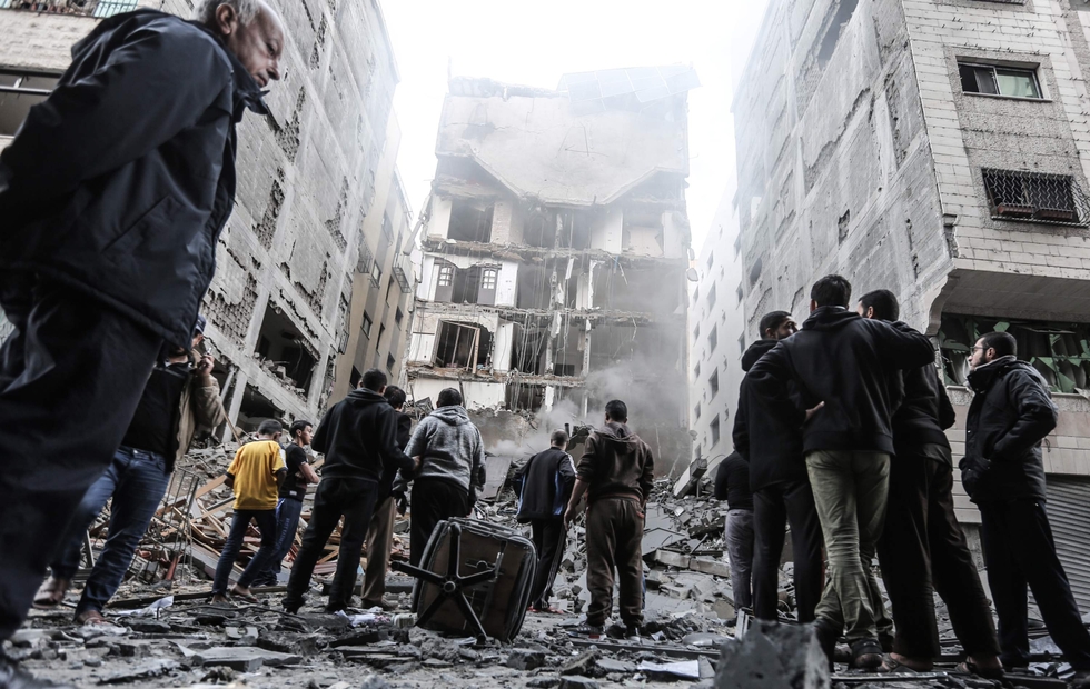 Israeli jets launched strikes on Gaza that lasted for much of Monday night. One of the buildings destroyed was the Hamas-linked al-Aqsa television station, seriously damaging dozens of adjacent houses located in Gaza City’s densely populated Nasr neighbourhood.