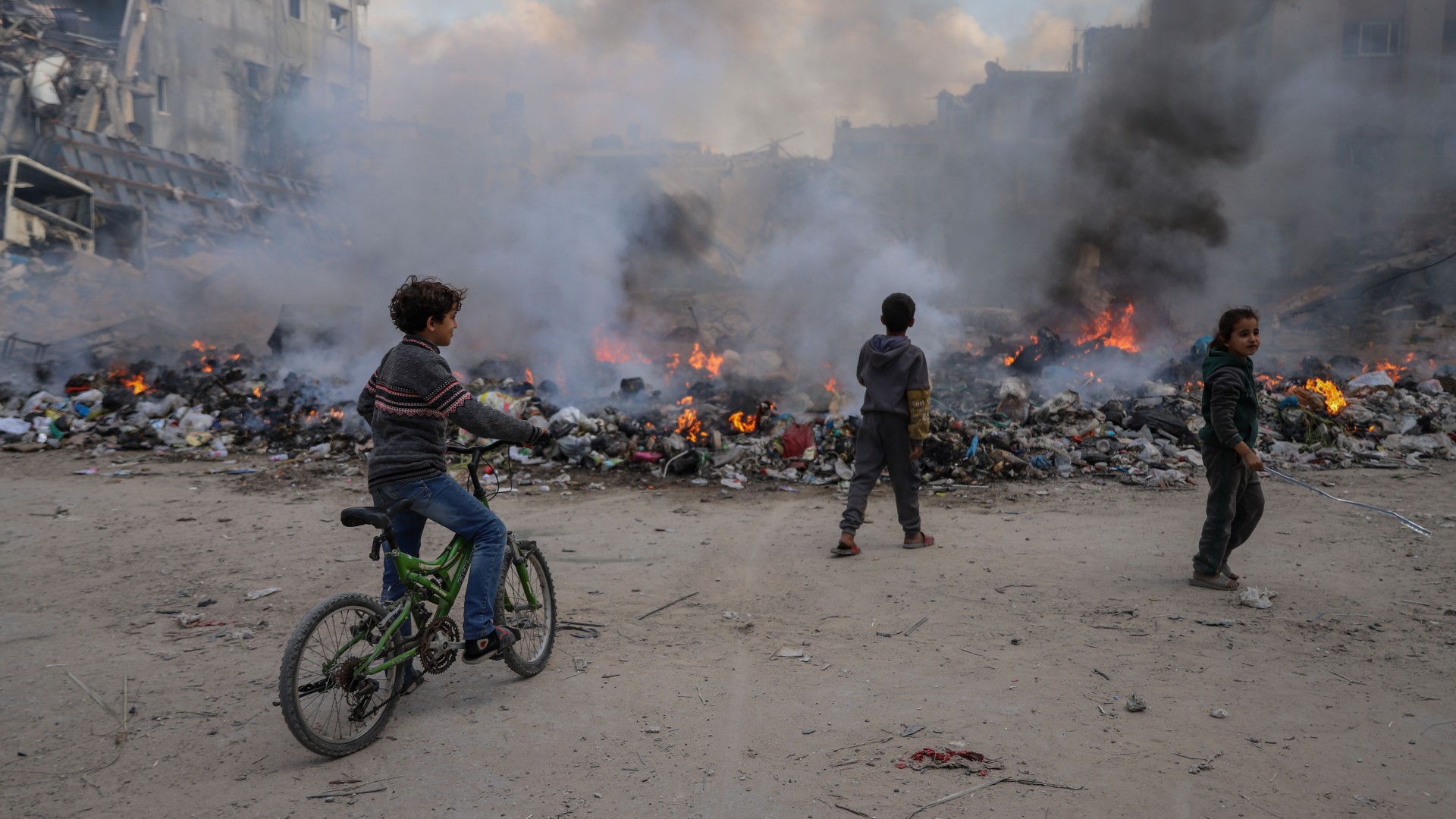 Gaza has been threatened by plague and deadly diseases as garbage fills the streets. In this photo, a group of children play near a waste landfill site in Gaza City (MEE/Mohammed al-Hajjar)