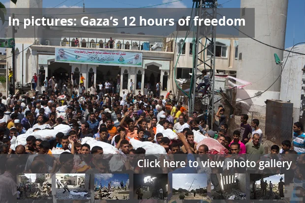 On Saturday evening, when muezzin called for the prayer, giving the signal to break the fast of the possibly last day of Ramadan, there was no sound of the rhythmical shelling from the Israeli navy, that customary accompanied the muezzin's call during last three weeks in the port area of Gaza city. There was a ceasefire in the Gaza Strip at the time. It was supposed to last 12 hours, till 8pm, but got extended with Israel's agreement till midnight, and then for another 24-hours. On Sunday, the unusual quiet was disrupted, the ceasefire finished earlier and the echoes of bombs falling around Gaza Strip returned.