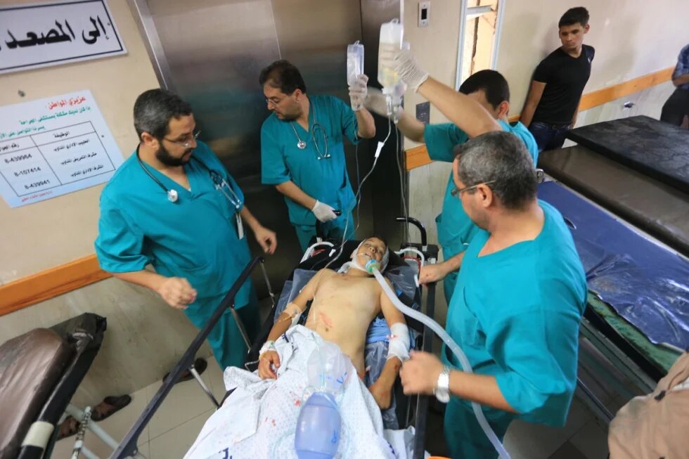 “I saw the massacre of the Ayyad family, when tank shells hit them over and over again, 12 people were trying to flee, but were blown to pieces, splattered over the walls and concrete”, Osama says, while he also keeps looking at the ambulances still arriving and crowds of people screaming in fear.