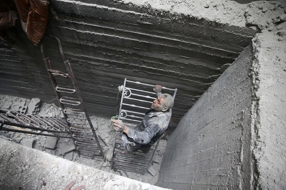 Staying alive in the rebel-held suburbs of the Syrian capital means getting as deep as possible, be it a basement, a sewer or a hole dug during the years of siege by Bashar al-Assad's forces. And staying there for hours on end.