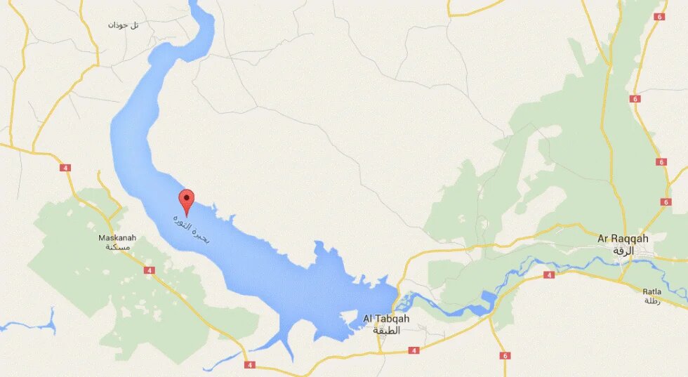 The lake lies some 40 kilometres east of the city of Raqqa – it was previously the only provincial capital to be fully wrested from government control during the almost four-year long civil war between embattled President Assad and various rebel groups.