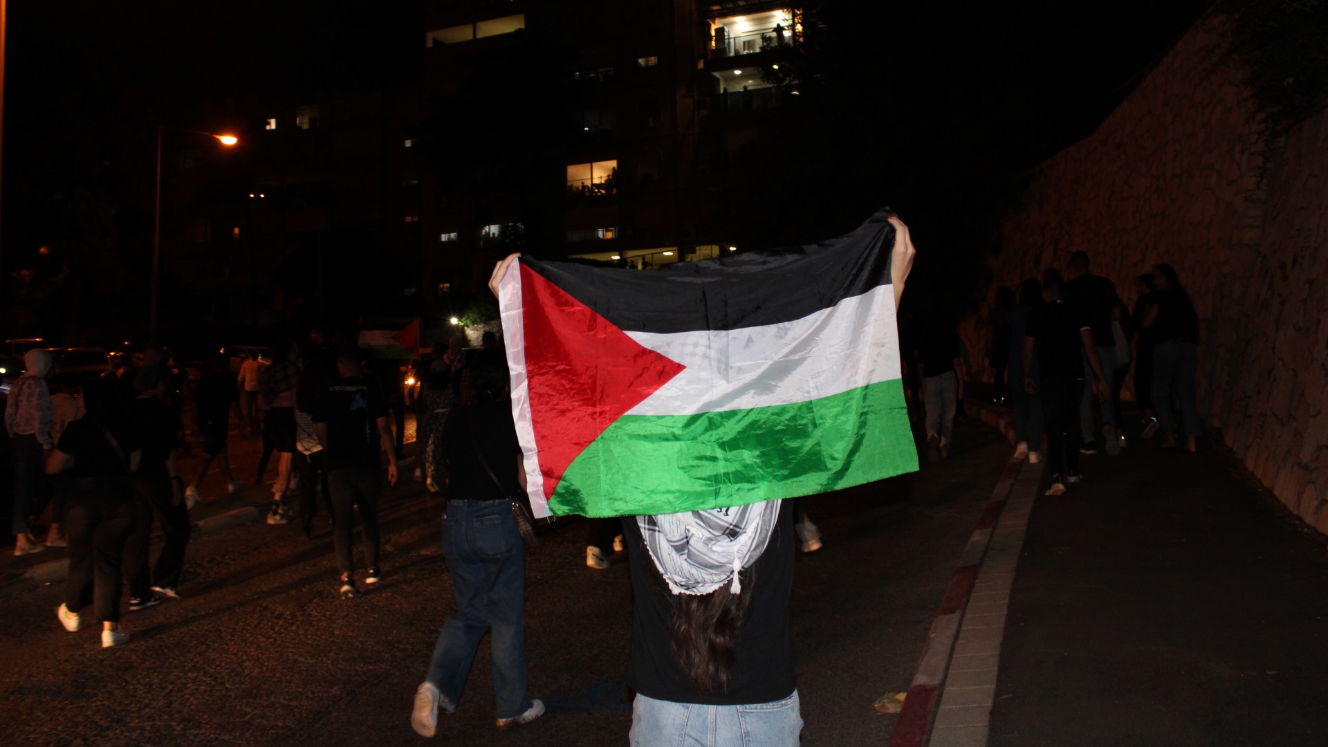 Dozens of Palestinian students at the Hebrew University in Jerusalem participated in a demonstration, which was met by a hostile counterprotest by pro-war students.