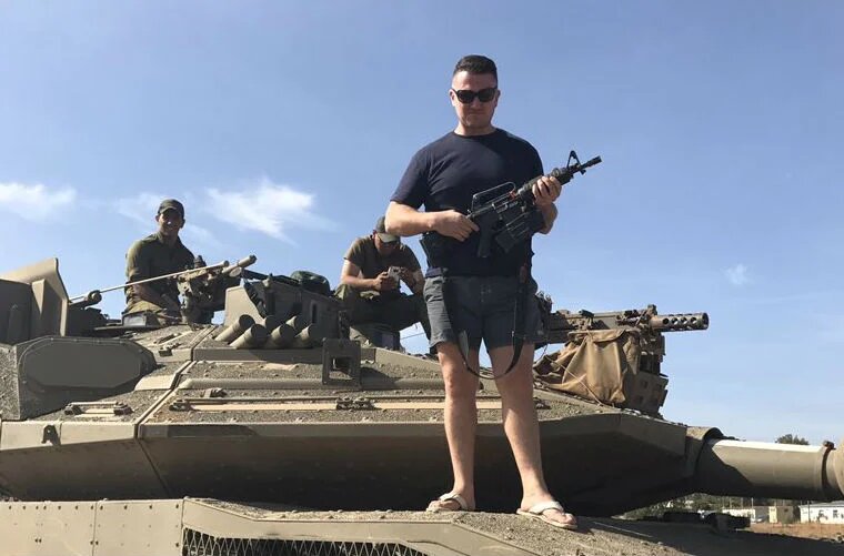 Gun-toting British anti-Muslim activist poses on Israeli tank