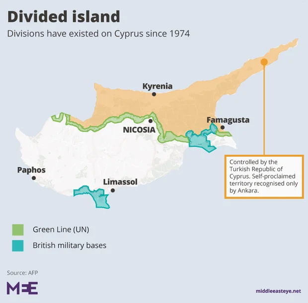 The conflict has inflamed the situation in Cyprus which has been unresolved since 1974 when a Greek Cypriot coup, followed by violence between Turks and Greeks, triggered Ankara to intervene. Northern Cyprus, only recognised by Turkey, is now a Turkish Cypriot state with around 300,000 inhabitants.