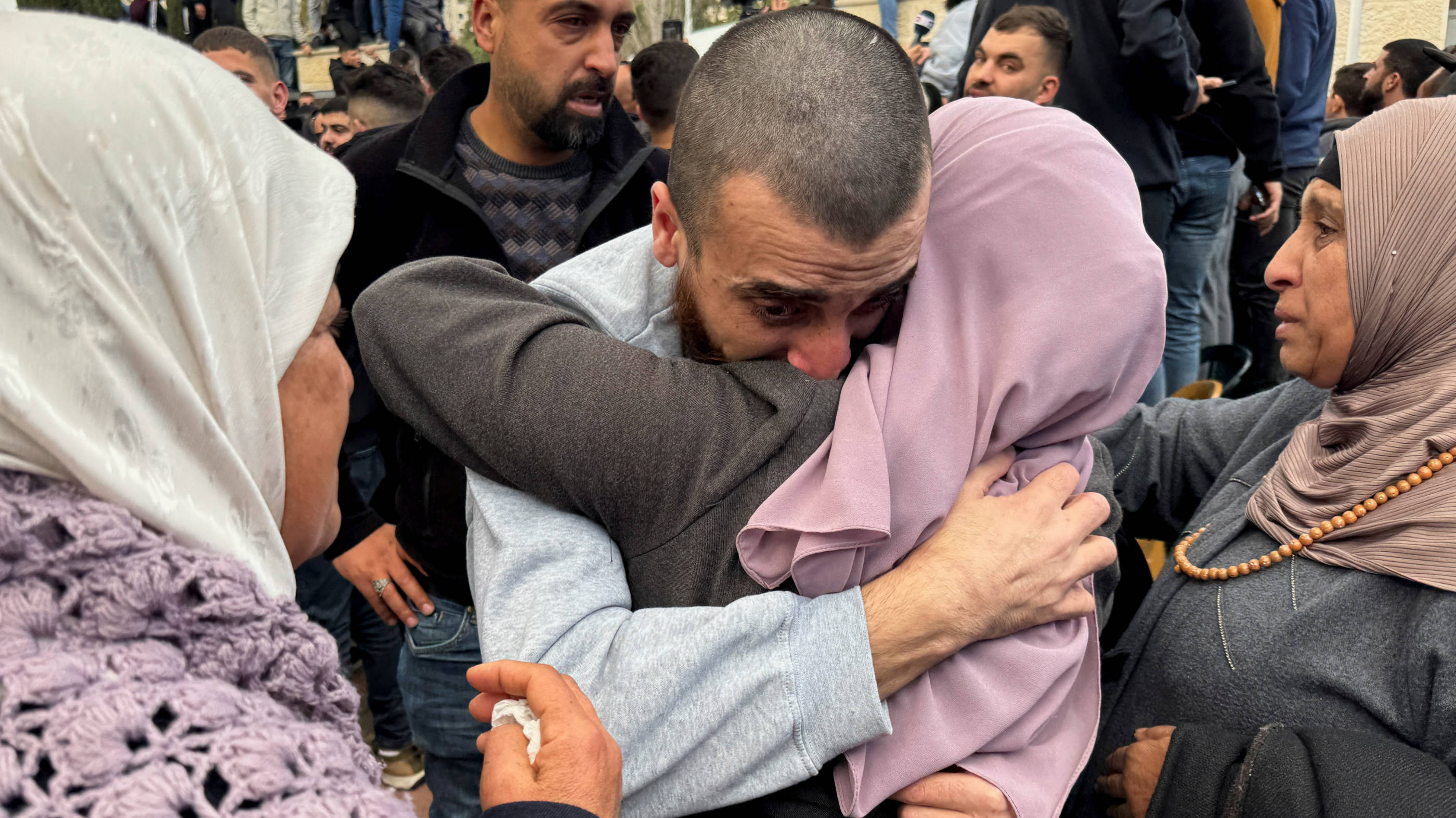 Nearby, many Palestinians gathered to welcome their released loved ones.