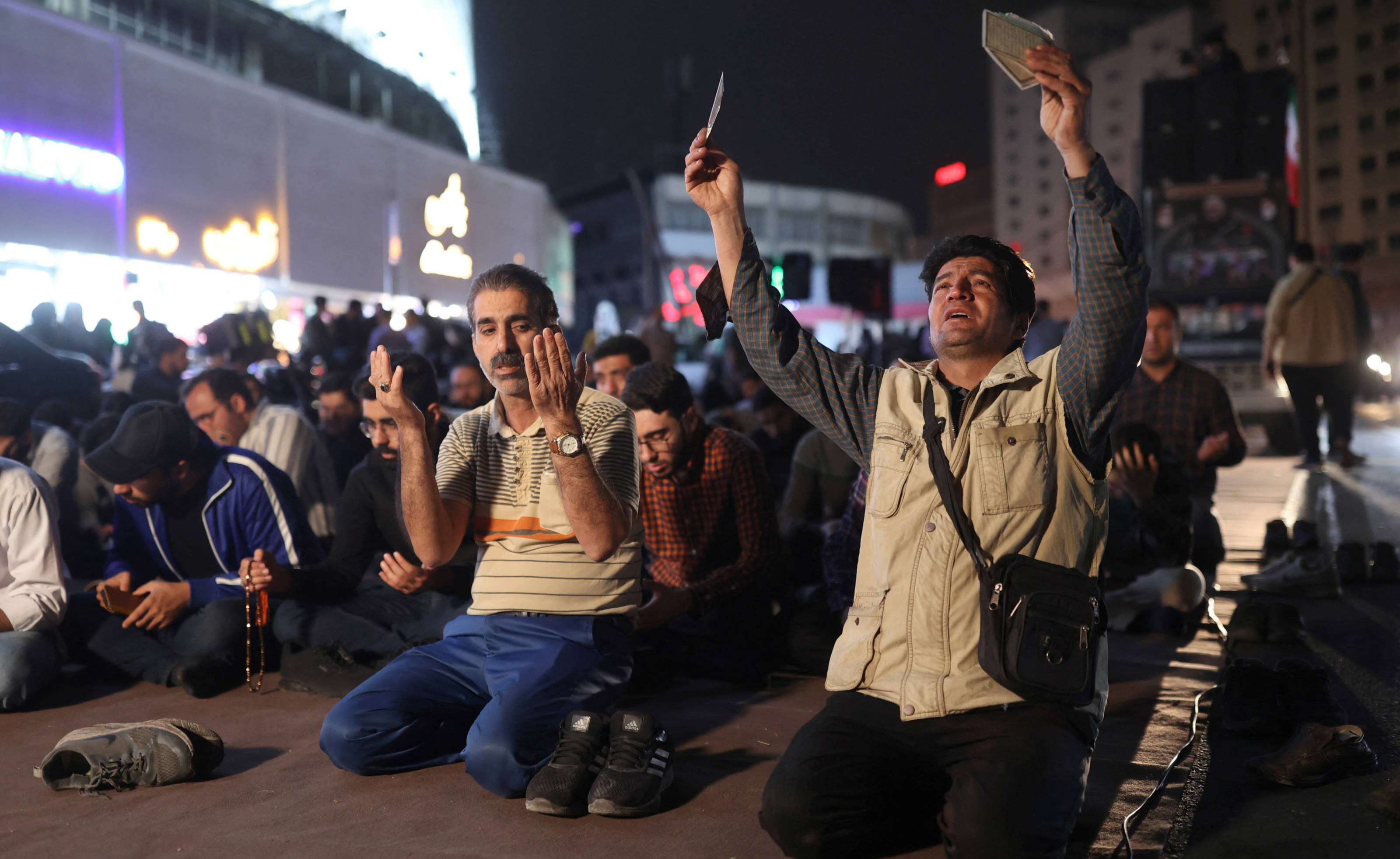 People in Tehran pray for the well-being of Iran's President Ebrahim Raisi following the crash of a helicopter carrying him, 19 May 2024 (Wana/Handout/Reuters)