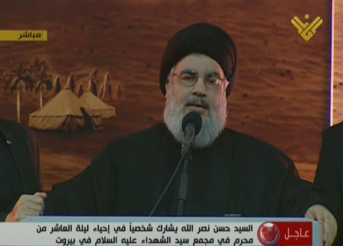 The head of the Shiite group, whose forces are fighting in Syria alongside the troops of President Bashar al-Assad, usually addresses supporters via video link for fear of assassination by Israel, and had not appeared in public since July.
