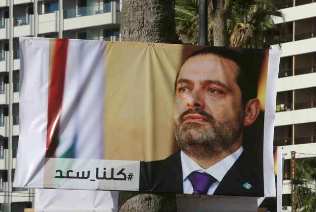 "We are all Saad" says a poster depicting Lebanon's Prime Minister Saad al-Hariri, who has resigned from his post, in Beirut (Reuters)
