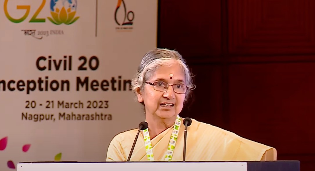 Nivedita Bhide at the C20 Inception Conference in Nagpur, India in March 2023 (Screengrab)