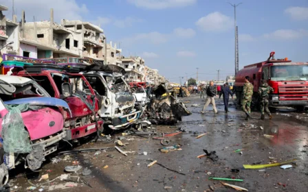 Syria's government says bombed-out city is being rebuilt, but return is impossible for many who escaped its destruction