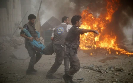 The White Helmets were hit by a strike in Syria's Douma when they were out responding to an airstrike by President Bashar al-Assad's forces