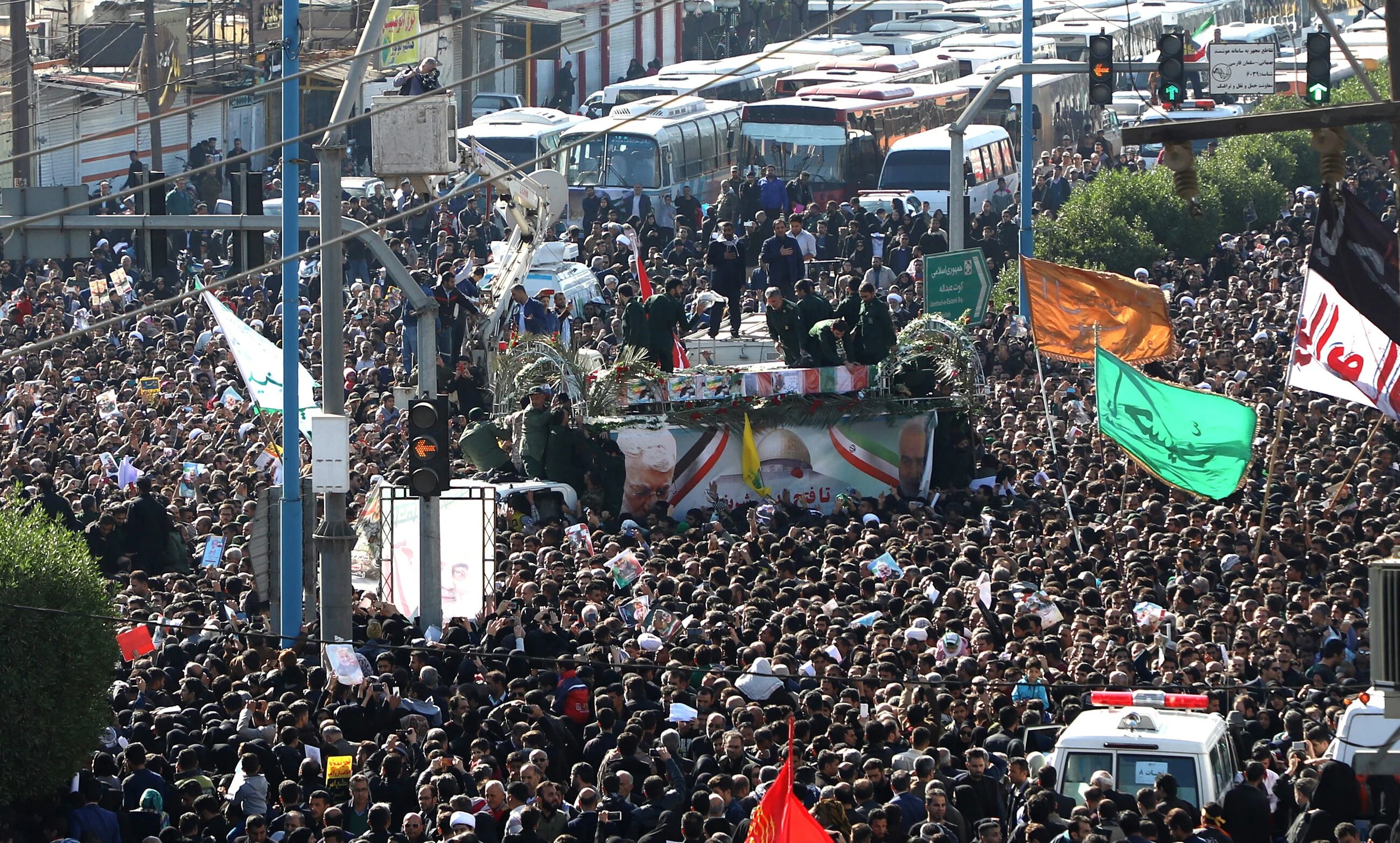 They were then taken to the city of Mashhad for a second ceremony to mourn Soleimani's death.