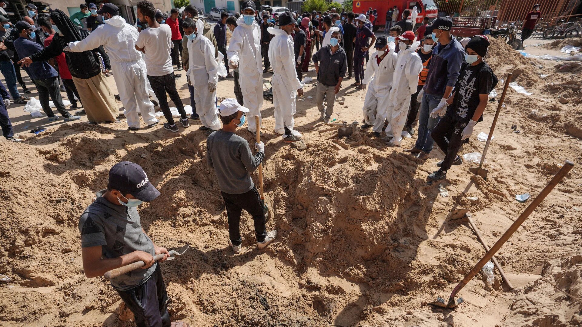 The mass graves were discovered weeks after Israeli troops ended a three-month invasion of Khan Younis, during which ground forces repeatedly attacked Nasser hospital.