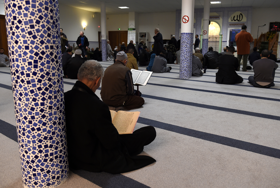 Muslims pray on January 2, 2016 at Valence's mosque, southeastern France (AFP)