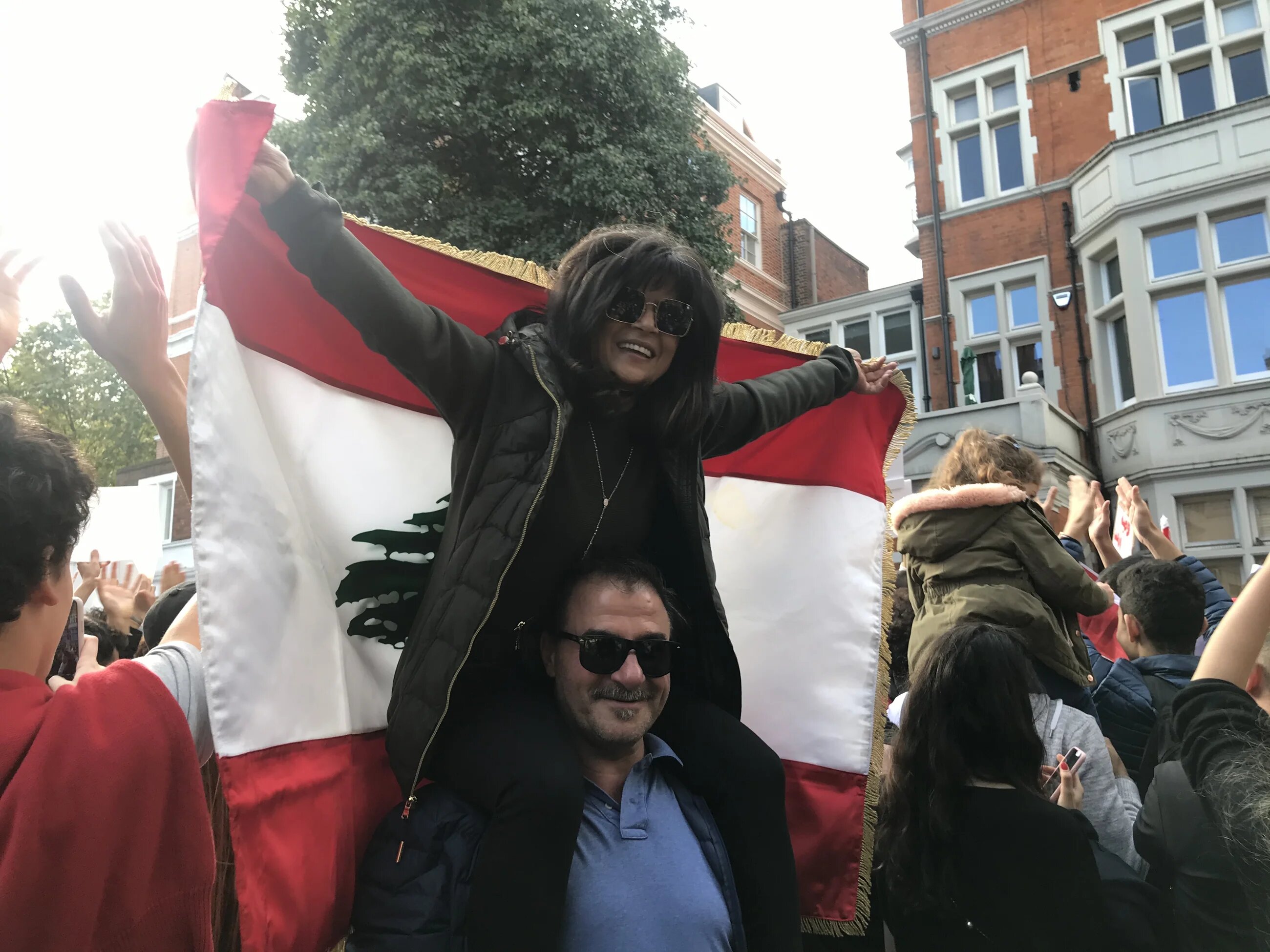 At least 1,300 people massed outside the Lebanese embassy in London's Kensington on Saturday, expressing the anger, frustration and unity that have been seen across Lebanon, where protests entered their third day.