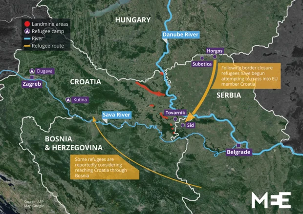Croatia has said that it will not close its borders and has begun processing new arrivals, but concerns are growing that the incoming refugees could become caught up in mine fields that have been left over from the Yugoslav Wars in the 1990s and still line the border.