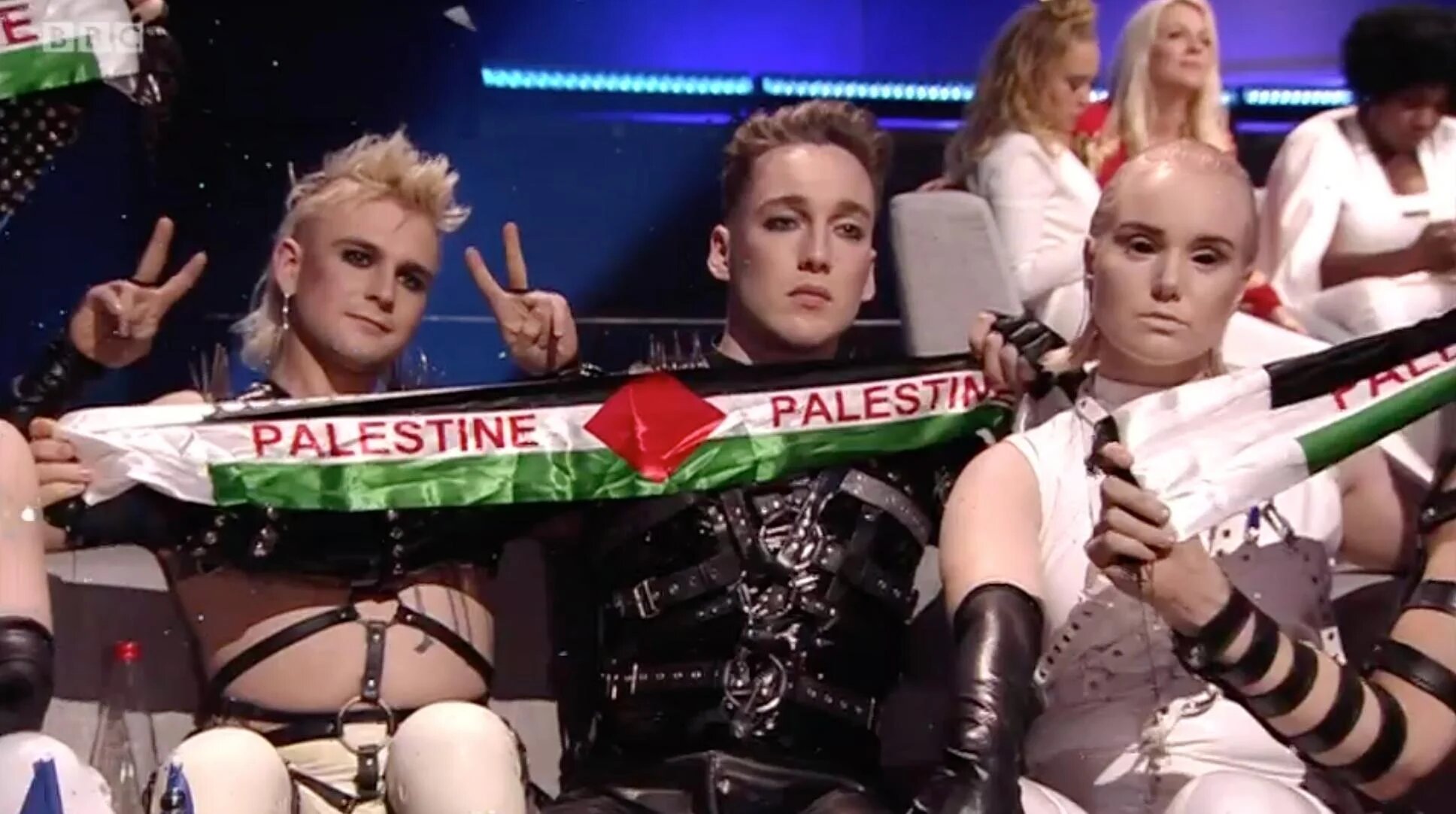 Iceland's 2019 entry to Eurovision, punk band Hatari, held up a banner with the word "Palestine" and Palestinian flag colours while their vote was announced.